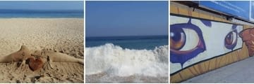 J.233 (18.08) : plage blindax, churros devant coucher de soleil & hôtel de luxe.