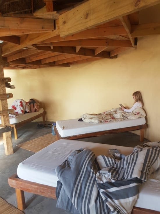 Il a fallu venir nous chercher en 4×4. Nous avons emprunté une route de terre bien cabossée pour arriver 20 minutes plus tard dans un village surplombant une immense plage déserte. Nous restons 3 jours.