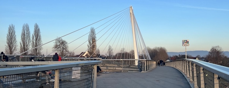 En un total d’environ 45 minutes de marche! Ce qui amène au Jardin des deux rives😄 et donc vers la passerelle piétonne qui lie Strasbourg à Kehl!