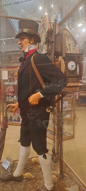 Après déjeuner nous nous allons au musée de la forêt noire qui est juste à côté. Le prix du billet est jumelé avec celui des cascades. On y découvre le tissage de la paille en particulier pour fabriquer des sacs et des chapeaux. Il y a aussi une industrie du verre qui approvisionne une partie de l'Allemagne, la Suisse et la France. Nous découvrons les costumes de la forêt Noire en particulier le chapeau à gros ponpons utilisé dans certaines cérémonies. Il y a également un impressionnant mur des horloges, ainsi que des coucous, dont certaines remontent au 17eme siècle. Elles étaient produites dans chaque ferme, en particulier pour combler les longues soirées d'hiver, et étaient vendues dès l'origine dans le monde entier. Il y en a au moins dans 4 salles de l'origine au 17eme siècle à aujourd'hui.