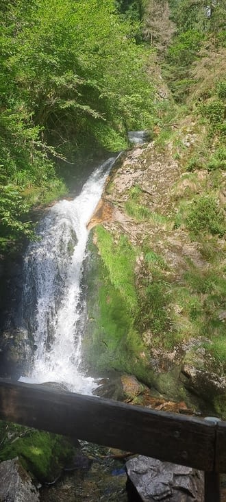 Nous nius dirigeons vers les chutes d'Allerheiligen. Nous y arrivons après avoir decendu une pente continue à 18% sur près de 4km (700m de dénivelé): attention aux freins qui chauffent! Le dénivelé total des 7 chutes est de 90m. C'est un peu trop pour Monique qui s'arrête aux 3/4 après avoir vu le plus beau et Jean François continue jusqu'en haut. Après s'être reposé sur un banc Monique est en forme pour la descente!