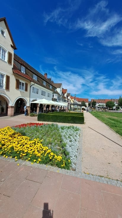 Mais pour le moment nous prenons la direction de FREUDENSTAD via une route touristique comme beaucoup de routes de la Forêt Noire. La ville fut revonstruite après avoir été brûlée en 1945. Ici se trouve la plus grande place MEEKTPLATZ d'Allemagne. Des arcades en font le tour et abritent des commerces. Dans un angle de la place se trouve une eglise protestante. La disposition des deux nefs en equerre permettait autrefois aux hommes et aux femmes de suivre l'office chacun de son côté. Il faut noter le joli plafond à nervures ainsi que les figurines en bois du XII siecle de 4 apotres. Nous ne mettons pas plus de 1h à faire le tour de l'ensemble et nous repartons.