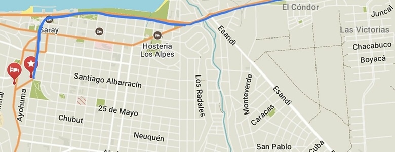 Le matin de notre départ de Bariloche direction El Chaltén, on doit prendre un bus de ville pour se rendre au terminal puis prendre notre bus-couchette à 12h30. L'auberge nous conseille le bus 20 ou le 70. Après avoir testé et détesté le 20, on choisit le 70. On part suffisamment en avance et on se rend à l'endroit où est censé se trouver l'arrêt de bus. Mais rien. Pas un panneau, pas un poteau.