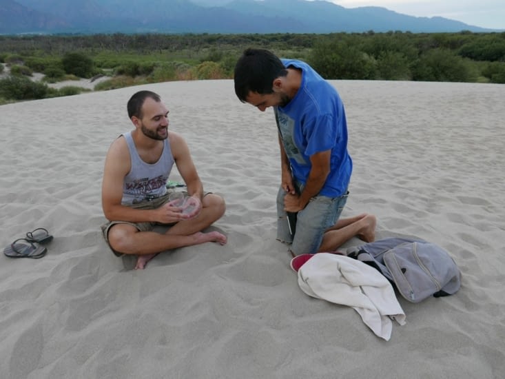 Arrivés sur Cafayate et plus de pesos pour payer notre prochain bus, 2 jours plus tard... Me voilà parti pour un aller - retour, version sprint, du terminal de bus au centre ville, me semblant une éternité (Avec les chaussures de rando, c'est quand même moins sympa de courrir). Cam pendant ce temps là, lisait le guide du routard...