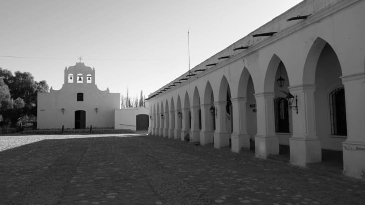 Après notre traversée de ce no man's land, nous ne sommes pas mécontents d'arriver à Cachi. Située à 2280m, cette petite bourgade paisible est au pied du nevado, qui dépasse à 6000m. Tout est blanc dans ce village.