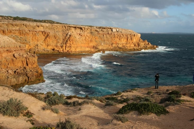 Le matin suivant, nous reprenons la route ensemble, et partons finir de visiter le coin. Après quelques kilomètres de route en terre, nous nous arrêtons manger sur une plage paradisiaque. Nos 2 amis nous expliquent alors qu'ils souhaitent rester dans le coin l'après-midi afin d'essayer de faire de la plongée. Nous décidons avec Thibaut, de les laisser, et de rejoindre la dernière ville avant la traversée de la plaine de Nullarbor : Ceduna.