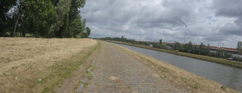 Enfin je pars ! J'ai attendu et redouté ce moment longtemps, mais la, me voici sur ma selle, pas super confortable d'ailleurs, en direction de Bruxelle, 106 km ! Moi qui était parti sur une base de 60km par jour je peux vous dire que je les ai senti passer les kilomètres ! J'ai eu la chance de longer le canal menant à bruxelle qui offrait des paysages somptueux et des routes seulement constituées de pavés très très très agréable ! J'en ai d'ailleurs perdu mon tapis de sol, la seul chose confortable que j'ai apporter, que j'ai réussi à retrouver en remontant le fleuve vers le debut de la route pavé, quel soulagement !