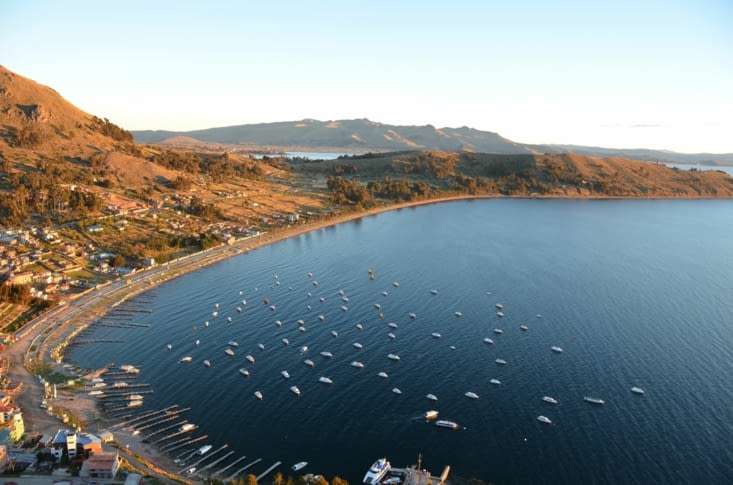 Perché à 3812m d'altitude, il s'étale sur 8400km2 et peut atteindre à certains endroits, 280m de profondeur. Il est partagé entre le Pérou (55%) et la Bolivie. Nous on décide de faire escale à Copacabana posée à 3840m sur les berges du lac. Pour la petite histoire, on y vénére Notre-Dame de Copacabana, sainte patronne de Bolivie, qui aura donné son nom à la célèbre plage de Rio de Janeiro par la promesse faite par un moine bénédictin à cette dernière en perdition au large des côtes brésiliennes.