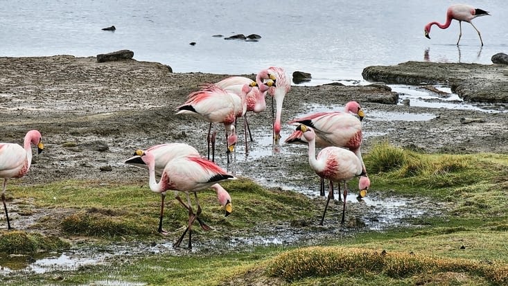 Nous allons ensuite voir notre 1ere lagune ,il pleut et il fait froid c'est dommage car l'endroit est magnifoque et on peut voir les flamants rose de tres près !