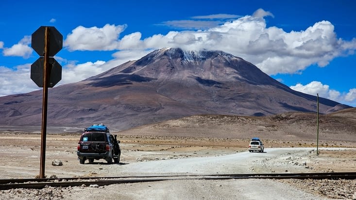 Un peu plus loin sur la route on refera un stop près d'un chemin de fer pour admirer la vue sur les volcans qui nous entourent .