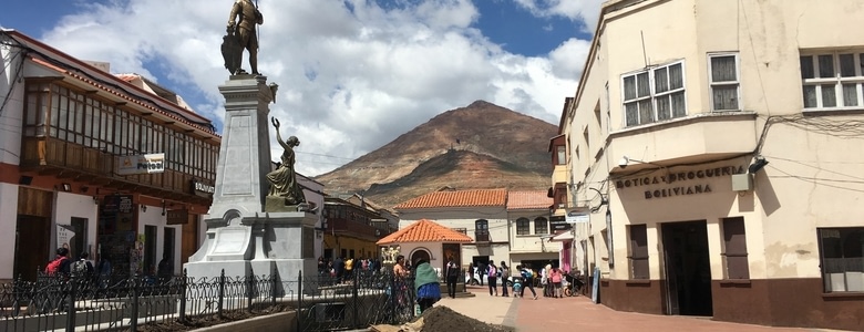 Inscrite au patrimoine mondial de l'UNESCO, la cité coloniale de Potosí est établie à 4090m d'altitude ce qui en fait la ville de plus de 100 000 habitants la plus élevée du monde. La ville est dominée par le "cerro Rico" (colline riche). Cette montagne regorge d'argent et a été une source de revenu importe pour l'empire espagnol, à l'époque Potosí faisait partie des ville les plus riches du monde. Aujourd'hui Potosí est célèbre pour ses mines d'argent encore exploitées.