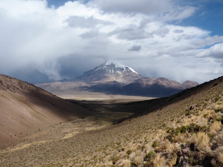 Sajama, c’est un petit bled perdu au milieu de nul part, mais où il y a le plus haut sommet de toute la Bolivie juste à coté ! Ce sommet s’appelle, attention l’originalité : le Sajama ! Il culmine à plus de 6500m ! Toute la zone autour de cette montagne est un parc national, qui s’appelle : le parc national de Sajama. lol.