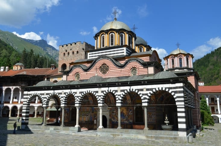 Bon la glande s’est finie, nous repartons en road-trip. Nous nous trouvons donc un P+R pas loin du centre. En sortant de la voiture, nous commençons à discuter avec Rossan qui vient lui aussi de poser sa voiture. Pendant le trajet en métro, il nous file plein de bons spots pour le sud et nous donne la meilleure route pour aller en Grèce. Nous visitons Sofia qui n’a pas forcément grand intérêt : Plovdiv est beaucoup plus belle. Petit tour de la mosquée, de l’église et des bâtiments principaux. Nous reprenons donc la route direction le monastère de Rila ; le plus grand monastère de Bulgarie. Nous nous retrouvons devant Troyan en deux fois plus grand, deux fois plus beau. L’agencement est le même mais les bâtiments ont trois et non deux étages et les colonnes intérieurs sont en pierre et plus en bois. L’église elle aussi est magnifique ; entièrement peinte de fresques intérieures comme extérieurs avec des icônes splendides. Petite route jusqu’à Plovdiv par les montagnes ; il faut slalomer entre les trous dans le bitume mais la vue en vaut le coup.
