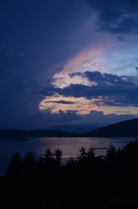 Il est temps de manger un morceau et de repartir vers la Grèce via la chaîne de montagne des Rodopi. Rossan nous a conseillé de passer par les lacs de Batak et Dospat. Arrivés en fin de journée à Batak, nous pratiquons ce que nous appelons les « Patrick Chirac au camping des flots bleus » : Chaise, table, saucisson, détritus sur le sol… (joke ! nous aimons notre bonne vieille Gaïa !). Nous passons plusieurs heures à discutailler de pêche, pour enfin finir par commettre le plus grand des crimes à l’encontre des poissons : la baignade. Lac pollué, nous effectuons une partie du tour du lac pour trouver une superbe rive afin de se reposer. Petite accrochage avec un local, qui ne se mêle pas de ses affaires. Le parking abandonné est « privé » et les deux « jolis camping » qui lui appartiennent sans doute ne nous donnent guère envie. Même le contrôle de routine des policiers 20mn plus tôt était plus humoristique que ça… Nous avons donc 20mn pour « dégager de la propriété ». Le repas est chaud. C’est poêle remplie de pates en sauce, en jurant comme des damnés que nous trouverons une aire « gratuite » sur une départementale très empruntée.