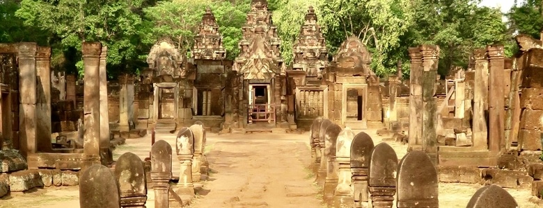 Il a été construit au Xe siècle, non pas par un roi, comme tous les autres temples d’Angkor, mais par un brahmane hindou. Il a été redécouvert tardivement, en 1924 et a fait l’objet de plusieurs restaurations, qui mettent en valeur des sculptures et ornements uniques, dans un grès rose chatoyant.