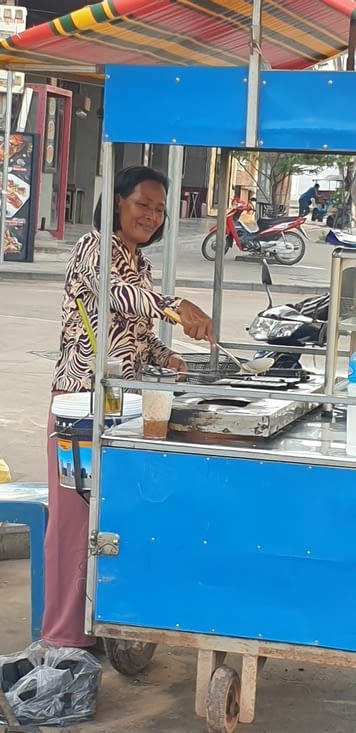 ..je trouve un endroit sur un endroit pres de la riviere.je note qu il n y a que tres rarement des poubelles a cet mais que c clean..malgre les restaurants ambulants qui s installent ici le soir...et ou je mange d ailleurs..avec les moustiques..