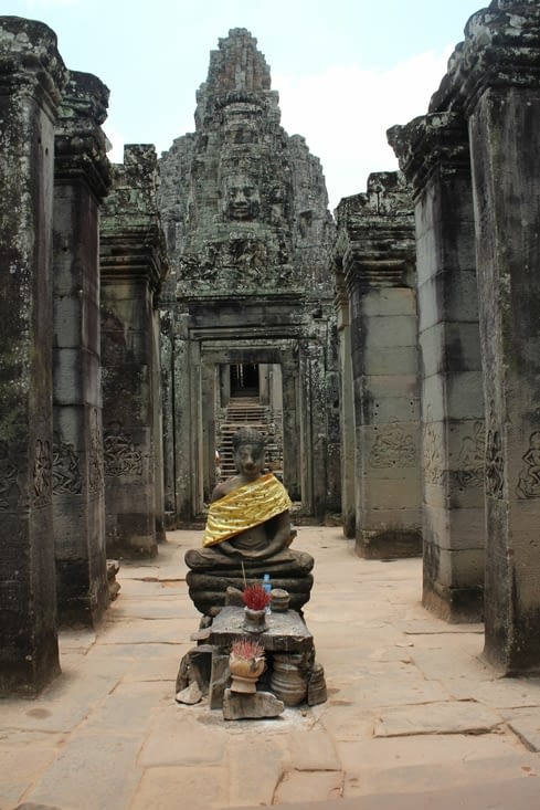 Le Bayon ressemble de loin à un tas de décombres, mais lorsqu’on y pénètre, on est fasciné par les 216 visages monumentaux d’Avalokiteshvara, au sourire énigmatique, qui nous environnent. Il contient aussi de très beaux bas reliefs représentant des scènes de la vie quotidienne. Ce temple a également été construit au XIIème siècle sous Jayavarman VII, le grand souverain bâtisseur d’Angkor.