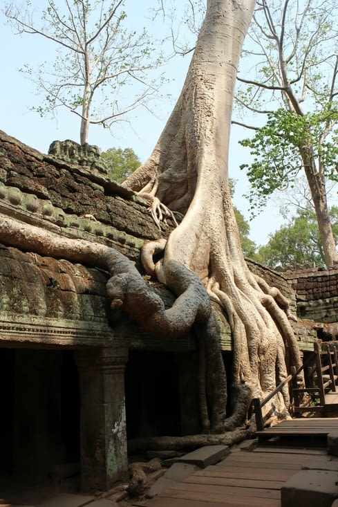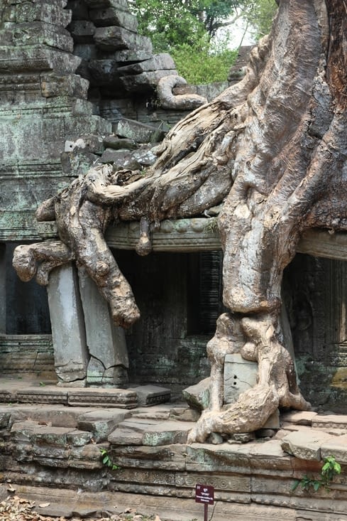 Ma cinquième et dernière visite de la journée sera pour le Phreah Khan. Construit au XIIème siècle, sous le règne de Jayavarman VII, c’est un des plus grands ensembles d’Angkor. Preah Khan signifie « épée sacrée ». C’est un dédale de couloirs voûtés, de sculptures raffinées et de pierres couvertes de lichens . C’était à l’origine un temple bouddhiste dont les statues ont été décapitées lors de la résurgence de l’hindouisme.