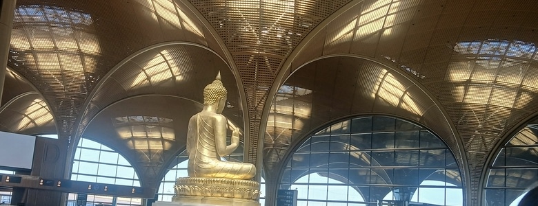 Arrivee sans problème a l aeroport, la navette est juste a côté des minivans.enfin 200m..et a 35 degrés et 20 kg a jouer la tortue..c est un peu..chaud..surtout qu arrivée a l aeroport,le bus nous laisse a 400m...sans chariot..il est beau certes mais tout n est pas encore au point