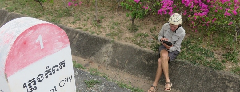 Aujourd'hui est un grand jour. On a été voir la mer, pour la première fois depuis la Mer Noire au delta du Danube. 20 minutes de scoot pour rejoindre Kep. Déception. Un petit port de pêcheur saturé de restos pour touristes, une plage de sable blanc qu'on suppose créée par l'homme (y a pas de sable ailleurs qu'à Kep), et une île trop loin pour l'atteindre à la nage, et trop petite pour y meriter de dépenser les 28$ de bateau. On se baigne quand même, on se boit une noix de coco et du sirop de canne à sucre pressé, et on file vers les terres. On découvrira un sentier balisé au milieu de rien, qui monte dans la jungle, 2 temples déserts, et finalement une boucle de trek bien connue ici, avec normalement entrée payante et cette fois fréquentée. On aura au moins esquiver le guichet.