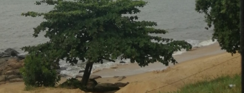 Benjamin et Lazarius m'ont déposée à la gare routière de Douala où j'ai pris un minibus pour Kribi, au sud , en bord de mer. Malheureusement il faisait nuit lorsque je suis arrivée et je n'ai fait qu'apercevoir la mer. La durée de mon voyage a été considérablement augmentée par des embouteillages en milieu de trajet.