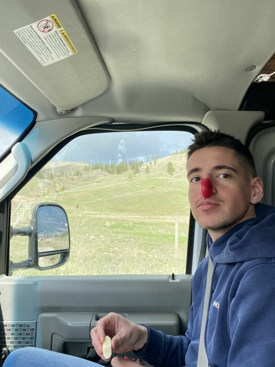 Dans un grand parking près d’une route bien situé nous étions seuls avec une station essence et un restaurant