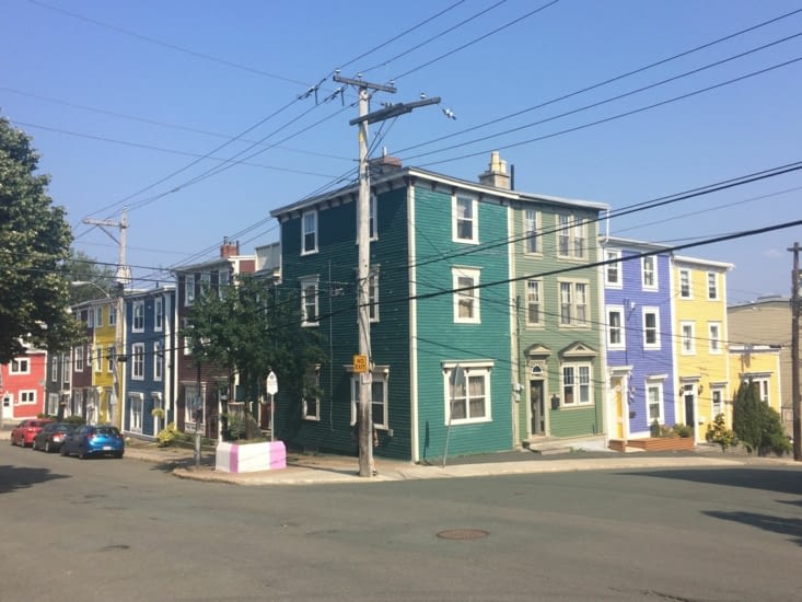 La première chose qui interpelle en arrivant à St. John's, ce sont les couleurs. Je n'avais jamais vu autant de maisons colorées de la sorte. La seconde, c'est que ça grimpe. Du genre San Francisco style !