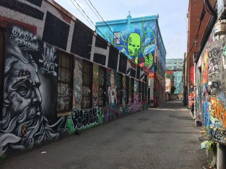 À noter qu'à proximité de Kensington Market et Chinatown se trouve Graffiti Alley, que je comprends comme étant LA place où les artistes de rue de Toronto s'expriment. Mon avis d’amateur de street art, à la fibre artistique quasi inexistante : une ruelle sombre et sale, où s’extériorisent d'avantage des néo-graffeurs que de vrais artistes. À l'exception de trois ou quatre belles œuvres, rien de bien intéressant à y voir. Bien loin de la liberté artistique accordée à Montréal.