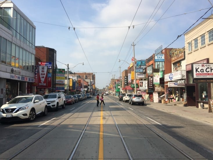 À l'instar de Montréal, New York et bien d'autres grandes métropoles, nous retrouvons à Toronto un grand nombre de quartiers ethniques. L'incontournable quartier chinois, les classiques Little Italy (« la petite Italie ») et Greektown (quartier grecque), mais également Little India (« la petite Inde »), un quartier sud-coréen, un quartier portugais, un quartier polonais, etc. Avec plus de 230 nationalités recensées (!!!), Toronto est sans nul doute la ville la plus multiculturelle du Canada, voire au monde. Néanmoins, pour avoir parcouru certains de ces quartiers (chinois, italien, portugais, grecque et indien), je dois avouer avoir été quelque peu déçu. Outre Chinatown, où l'on retrouve toujours la même atmosphère, quelle que soit la ville, quel que soit le pays (et où je me dirige systématiquement, à la recherche d'une nouveauté, pour au final me rendre compte que j'y ai probablement perdu mon temps…), je n'ai rien trouvé de très singulier en les autres quartiers. Il n'y a guère systématiquement qu'une rue principale, commerçante, et quelques drapeaux pour rappeler une quelconque appartenance ethnique. Je pense que l'intérêt de ces quartiers (à Toronto) apparaît plus pour qui a attrait aux cuisines du monde, moins pour l’œil d'un touriste.