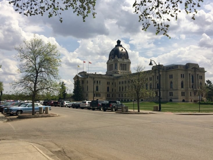 Arrivé en fin d'après-midi à Regina, je décide d'attendre le lendemain pour profiter de la capitale de la Saskatchewan. J'y ai finalement passé près d'une pleine journée ensoleillée à parcourir les rues du centre-ville. Visite que j'ai beaucoup appréciée, notamment car elle m'a permis d'en savoir beaucoup plus sur l'histoire de la province. Il est par exemple intéressant d'apprendre que Regina était initialement la capitale des Territoires du Nord-Ouest, qui occupaient à la fin XIXe siècle la majeure partie du pays, avant de devenir officiellement la capitale de la Saskatchewan, lorsque la province fut établie en 1905. Tout ceci est formidablement expliqué durant la visite guidée gratuite de l'édifice de l'Assemblée législative.