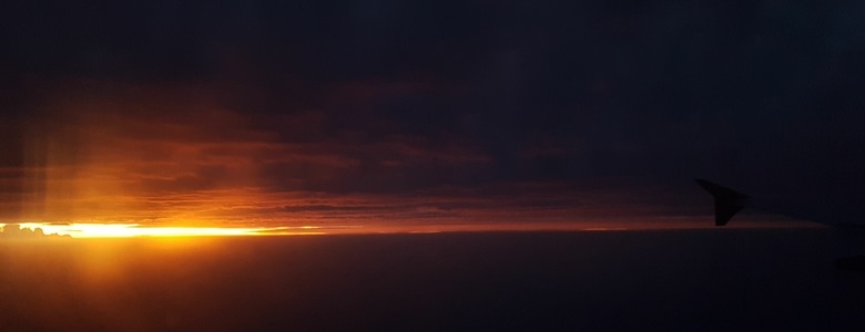 Le vol pour Montreal a lieu de nuit. L'occasion d'assister à un beau coucher de soleil et de voir les lumières de la ville by night.