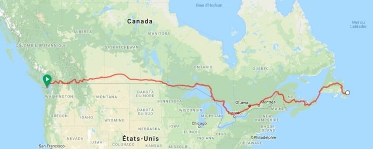 L'avantage d'avoir nourri cette ambition durant plus d'un an est d'avoir eu la possibilité de rencontrer quelques personnes ayant déjà réalisé ce défi et d'avoir eu le temps de me renseigner un minimum sur le sujet. L'une des premières choses que j'ai apprises est qu'il est plus commun de partir de l'ouest pour rejoindre l'est, pour profiter de vents plus favorables. Certains estiment ce paramètre négligeable, les vents étant très changeants, mais c'est visiblement le sens privilégié. Mon départ se fera donc de Victoria, kilomètre 0 de la route transcanadienne, pour rejoindre St John's, sur l'île de Terre-Neuve. Dans mes plans, j'ai prévu de m'élancer le 15 août, pour un périple qui devrait durer aux maximum 10 semaines.