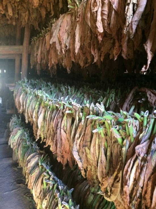 Après avoir déambulé entre les plantations de canne à sucre et de bananes, vient ensuite la visite d'une casas de tabac, sorte de grande cabane où sèchent les feuilles de tabac, avec les explications, en espagnol, d'un paysan. Très intéressant et instructif. Qui plus est, moi qui déteste le tabac, l'odeur y est forte agréable.
