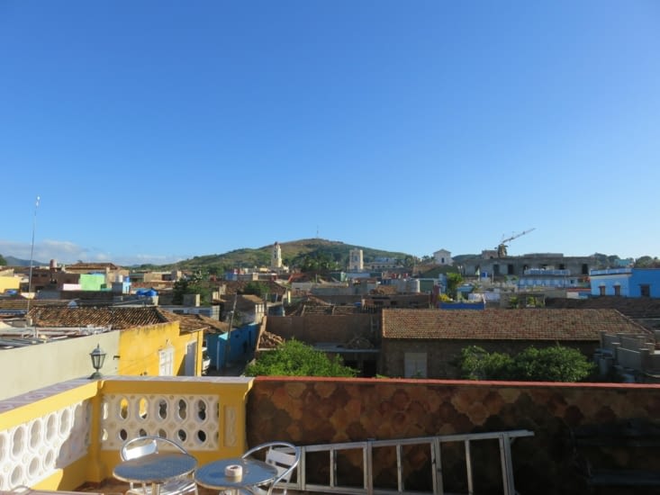 Arrivé sur place, nous recherchons une case particulare vue dans la routard, Malheureusement elle est affiche complet… Mais à Cuba, il y a toujours une solution, la sœur du propriétaire a une casa, nous la visitons et après négociation du prix nous acceptons de loger ici pour 2 nuits. La casa est bien située, près du centre, et possède une terrasse extérieure sur le toit bien sympathique !