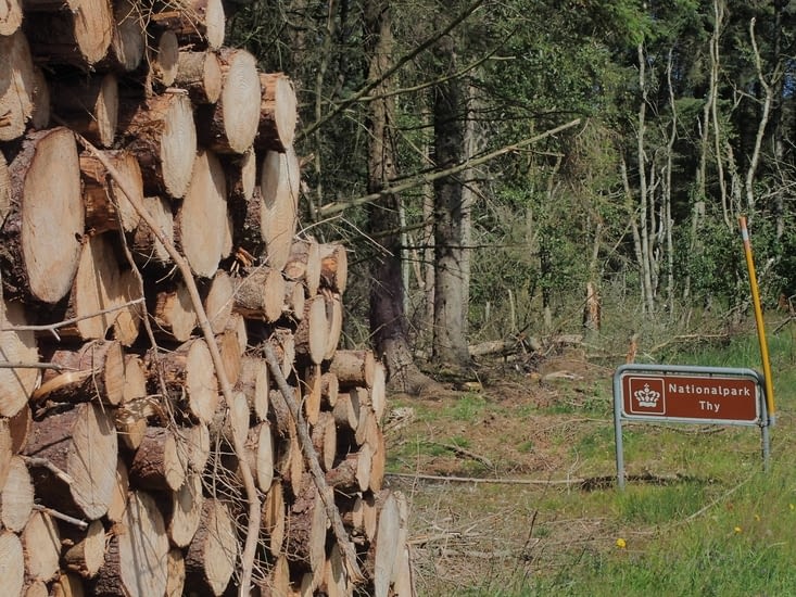 Sed ĝi ne daŭris, ĉar ni baldaŭ veturis tra superba arbaro – ni esats en la plej malnova el la kvar danaj naciaj parkoj, tiu de Thy. La arbaro ŝirmis nin sufiĉe kontraŭ la vento por ke ni progresu pli facile. Post ĉi tiu ŝirmita trairejo, ni preterpasas la urbon Stenbjerg kaj retrovas la dunon, nun multe pli en la vento. Sed kvankam ĝi estas ankoraŭ forta, ĝi tamen restas regebla dum la plejparto de la tago. Eble ni lernis.