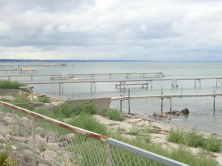 Post forlaso de Kopenhago, ni laŭiras la marbordon. Ni foje sekvas la vojon sed dum iom da tempo fervojon for de aŭtotrafiko. Dum kelkaj kilometroj, la reliefo estas tre kruta, kelkaj montetoj estas pli ol 15%. Sur la alia flanko de la pasejo, ni povas klare vidi Svedion kie ni estos morgaŭ. Estas la unua fojo, ke ni metos la radojn en tiu lando.