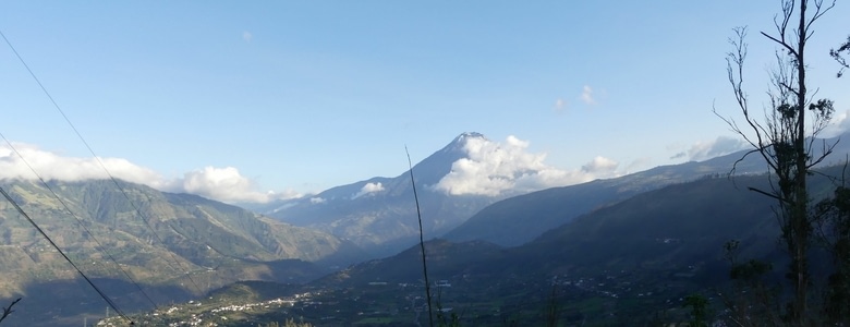nous quittons les hauteurs andines vers des terres plus douces . Nous passons par Ambato avant d'atteindre Banos mama Tungurahua se dresse dans le soleil