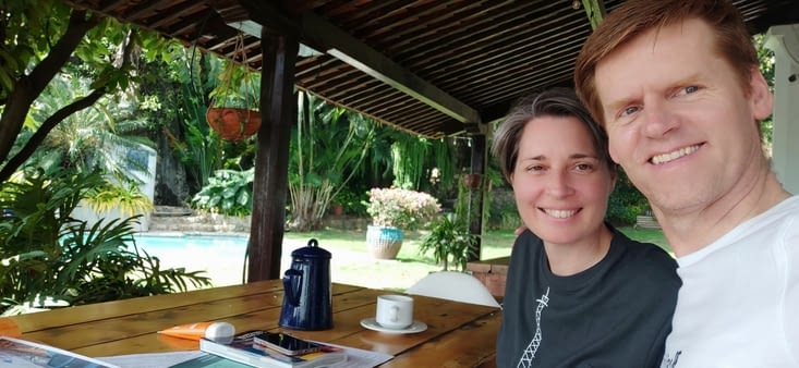 Enfin, sauf pour PY qui a appelé Iberia à 5h (12h France) pour la 2eme nuit de suite pour gérer les bagages. Ils avaient été identifiés et repérés la veille, et doivent prendre le vol Madrid-Guayaquil samedi. Mais nous serons aux Galapagos quand ils arriveront à Guayaquil. Pour éviter le jeu du chat et de la souris, le but de l'appel de ce matin était de leur donner l'adresse de notre hôtel sur l'île San Cristobal aux Galapagos, le Casa Blanca. Et de verifier que la 5eme valise etait bien avec les autres. C'est le cas. On espère maintenant que tout ce petit monde arrivera dimanche, ou lundi. On l'espère !