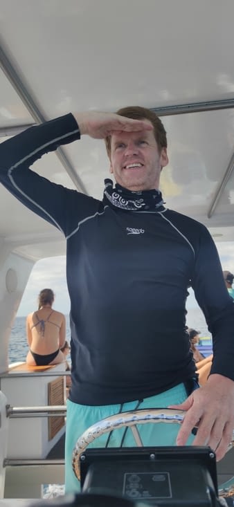 Le rendez-vous est tôt mais le départ en bateau se fait en face de l'hôtel, ça compense. Un bon petite m déjeuner, un cremage en règle comme tous les matins, et c'est parti.