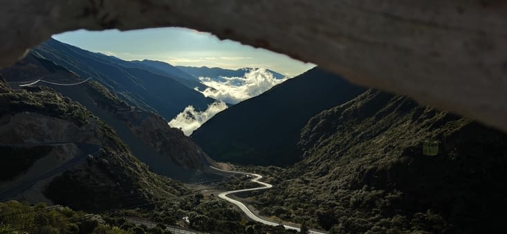Quelques pauses nous permettent de découvrir le télépherique à Lama, et de belles vues.