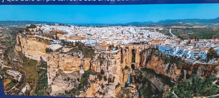 Nous commencons par la place des Toros où se trouve une des plus grandes (66m) et des plus belles arènes d’Espagne. Sa construction date de 1785. Des très beaux jardins avoisinants nous contemplons les belles vues sur la vallée....et ce n’est pas fini!