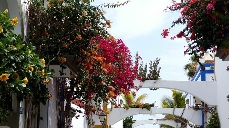 Pour redorer le tableau (en tout cas à mes yeux), je ne peux pas ne pas parler de celle qu’on appelle “la petite Venise des Canaries”. Des maisons blanches aux traits colorés avec beaucoup de plantes et de fleurs donnent en effet un cachet romantique au port qu’elles entourent. Un lieu surprenant qu’il est agréable de visiter une fois, puis deux, puis trois ! Le labyrinthe que forment les ruelles sont pleines de charme et chaque jour que nous passons ici, nous ne nous lassons pas de nous y perdre.