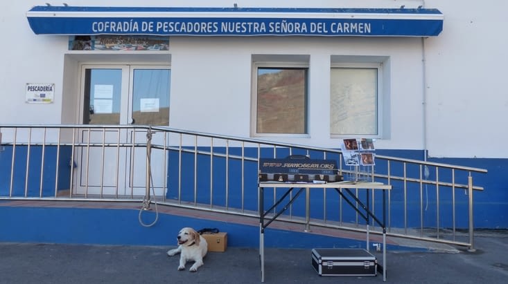 Avec un peu de conviction et une bonne dose de détermination, nous parvenons à atteindre Puerto de Vueltas 😅🥳. Et quelle destination ! L'amarrage au quai nous offre le meilleur point de vue qu’il puisse y avoir ici. Sur la ville proche d’un côté, pittoresque car encastrée dans les falaises et assez loin, tout de même, pour s’extraire de l’animation. Si on peut encore parler d’animation car règne ici un calme aussi surprenant qu’agréable. Bien que la langue la plus parlée soit l’allemand, le tourisme se fait discret de jour, de soirée, comme de nuit ! Celle que l’on entend le plus finalement, c’est Cahuète qui aboie sur tout ce qui passe sur le quai. Chiens comme humains, le passant qui empiète sur son nouveau territoire se voit gratifié d’une assourdissante escorte ! 🔊👍😩 De l’autre côté, les falaises. Le meilleur moment pour les observer est le soir, quand le soleil descend jusqu’à la limite de passer derrière l'horizon. Il les inondent d’une lumière chaude, transformant leurs silhouettes et mutant leurs couleurs marron d’une couleur rouge ocre. De ce même côté, la caractéristique playa de las Arena dont l’accès est très atypique ne laisse pas indifférent. Le seul qui existe passe au pied même des falaises à 1 ou 2 mètres de plus seulement au-dessus du niveau de la mer. Sur cette pass (fermée au public mais ouverte malgré tout. Un désaccord passé semble être révolu...), on se rend bien compte de leurs hauteurs vertigineuses. C’est de loin et jusque là, le meilleur arrêt à quai que l’on ait eu à faire dans tout ce voyage. Quand bien même l’approvisionnement en eau s’avère compliqué puisqu’il faut la transporter à pied dans nos deux jerricans de 20 L sur 600m. 🥵 Et tout en sachant que notre réservoir d’eau peut contenir plus de 100L.. (Je vous laisse le soin de faire le calcul du nombre d'allers/retours que l’on doit se farcir si l’on souhaite la remplir totalement 😅).