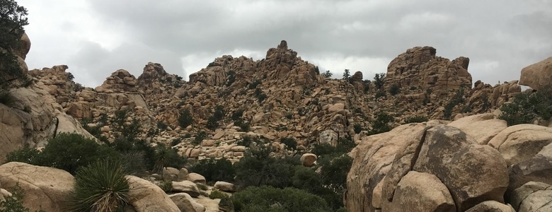 Malgré une matinée sous les nuages, nous faisons une première petite randonnée dans le parc : Hidden Valley Trail. Nous découvrons des paysages magnifiques, à perte de vue, et ces fameux arbres de Josué partout.