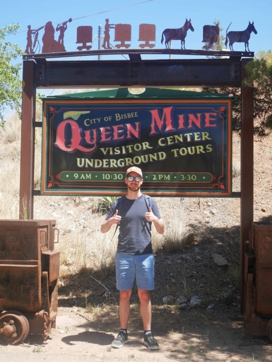 L’étape suivante fût une seconde ville minière beaucoup plus authentique et charmante : Bisbee. Nichée dans une vallée étroite, l’exploitation des minéraux (plomb, zinc, cuivre, argent et or) a perduré jusque dans les années 70. L’architecture Victorienne donne un charme certain à cette bourgade. Nous en avons profité pour nous mettre durant 01H30 dans la peau de mineurs ! Casques sur la tête et lampe torche dans la main, direction les profondeurs de la mine sur un wagonnet d’époque. Absolument génial !