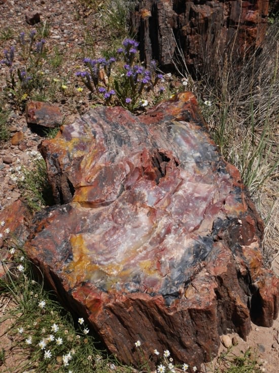 Le nom Petrified forest vient du fait qu’auparavant (il y a très très longtemps) il y avait ici une forêt tropicale qui a été entièrement ensevelie sous des cendres volcaniques. Ce qui donne actuellement des troncs entiers « pétrifiés » aux couleurs étonnantes et durs comme du diamant. Petrified forest n'est ni plus ni moins que l'une des plus grandes forêts pétrifiées au monde.