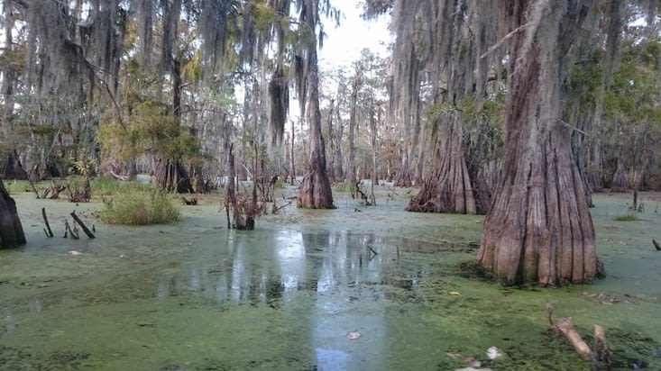 Départ de l'hôtel de bon matin afin de faire un tour de la ville à la fraîche puis Vermilionville: un musée dont les bâtiments s'étendent sur les rives du bayou Vermilion. Il est consacré à la vie d'autrefois en Acadie (1765-1890), à travers un village reconstitué. Dans chaque maison, des comédiens en costume d'époque font revivre de manière vivante les métier traditionnels. Une visite vraiment sympa à faire