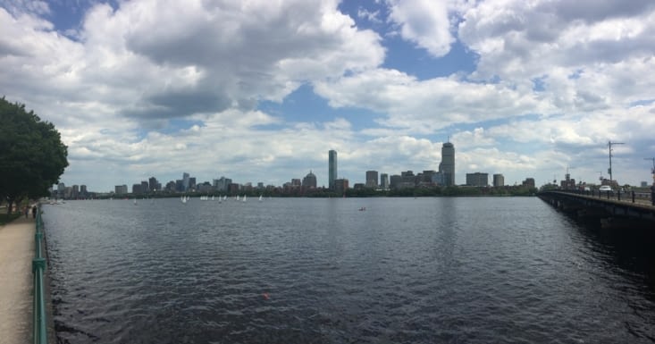Je traverse ensuite la Rivière Charles pour me rendre réellement à Boston. En ce jour ensoleillé, de nombreuses personnes s'adonnent à la voile. Le cadre est vraiment appréciable.