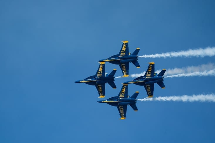 Ce week-end avait lieu aussi le U.S. Navy Blue Angels Air Show. Un meeting aérien avec des avions de combats de l'armée Américaine.. D'impressionantes voltiges aériennes dans tous les sens avec une extrême précision.