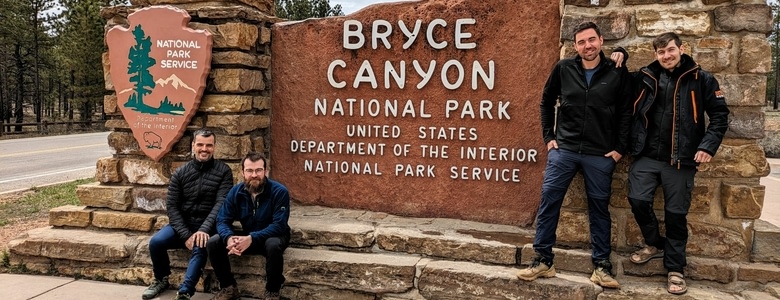 On arrive dans le parc, petite photo souvenir devant son entrée (oubli de le faire à Zion...😢)